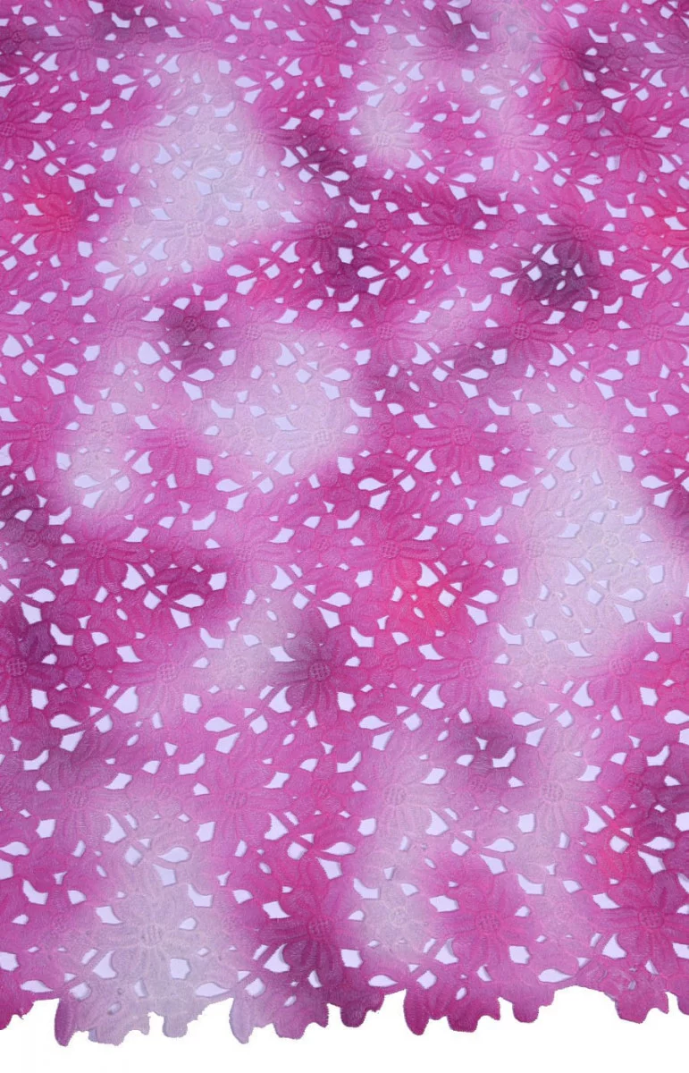 Talianska guipure látka v ružovej a bielej farbe - v kupóne s rozmermi 160 cm* 125 cm. Krásny, hustý vzor s originálnym tieňovaním, látka z dvoch strán je zakončená jemným ozdobným zubom. Látka je ideálna pre ľudí, ktorí majú radi originálne farby. Je ideálny na šitie elegantných šiat, blúzky, sukne alebo ako povrchová úprava iných látok.