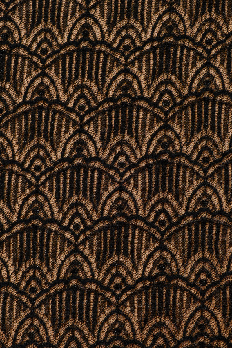 Čipka je široká 150 cm. Kombinácia čiernych viskózových a lurexových nití. To dáva efekt lesklej tkaniny. Navrhované použitie: dlhé šaty alebo blúzky.
