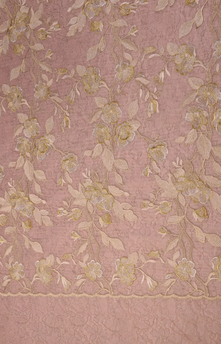 Francúzska čipka na organe - ružová so zlatou výšivkou