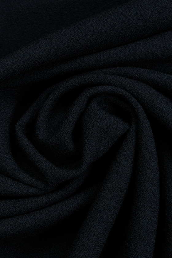 Talianska látka s žoržetovou väzbou v tmavomodrej farbe s prídavkom elastanu. Látka je mäkká, elastická, matná a má jemnú žoržetovú väzbu. Klasická ponuka, z ktorej si môžete vytvoriť šaty, sukne, saká a kostýmy.