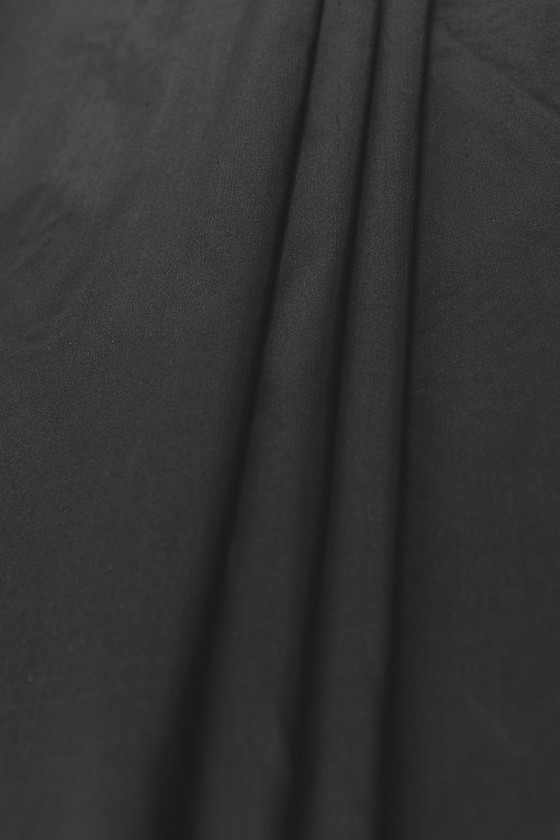 Čierny hodvábny taftový shantung je hladká, lesklá a mierne tuhá látka. Ideálne pre elegantné formálne outfity - šaty, sukne a tenké kabáty. Iba chemické čistenie!