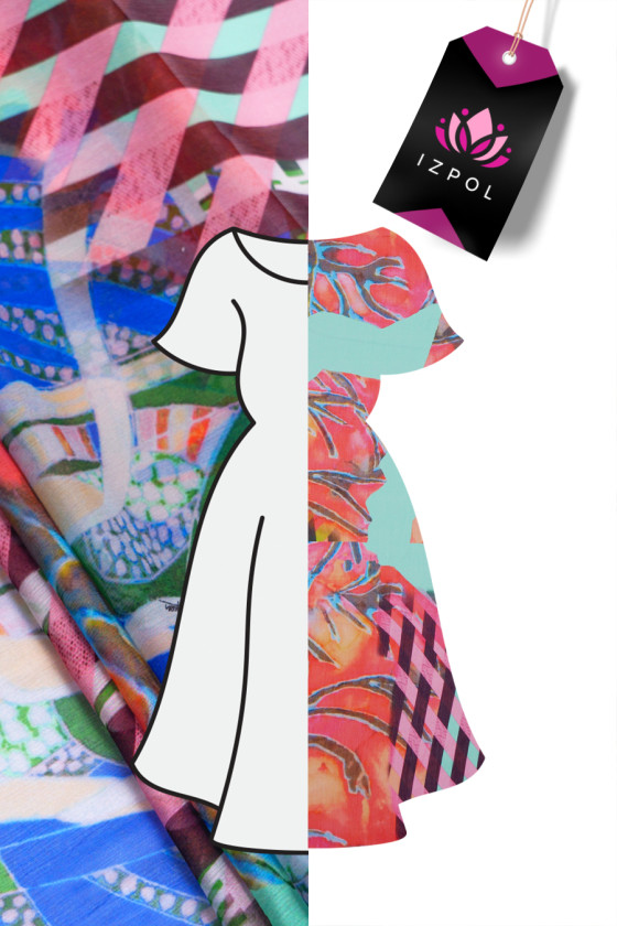 Taliansky hodvábny šifón pokrčený farebným, efektným kvetinovým a geometrickým motívom. Látka je dodávaná v kupóne s rozmermi 105 cm* 135 cm. Tenká, priehľadná tkanina - vyžaduje podšívku. Ideálne na šitie vzdušných šiat, sukne, blúzky, šálu. Zloženie: 100% prírodný hodváb G