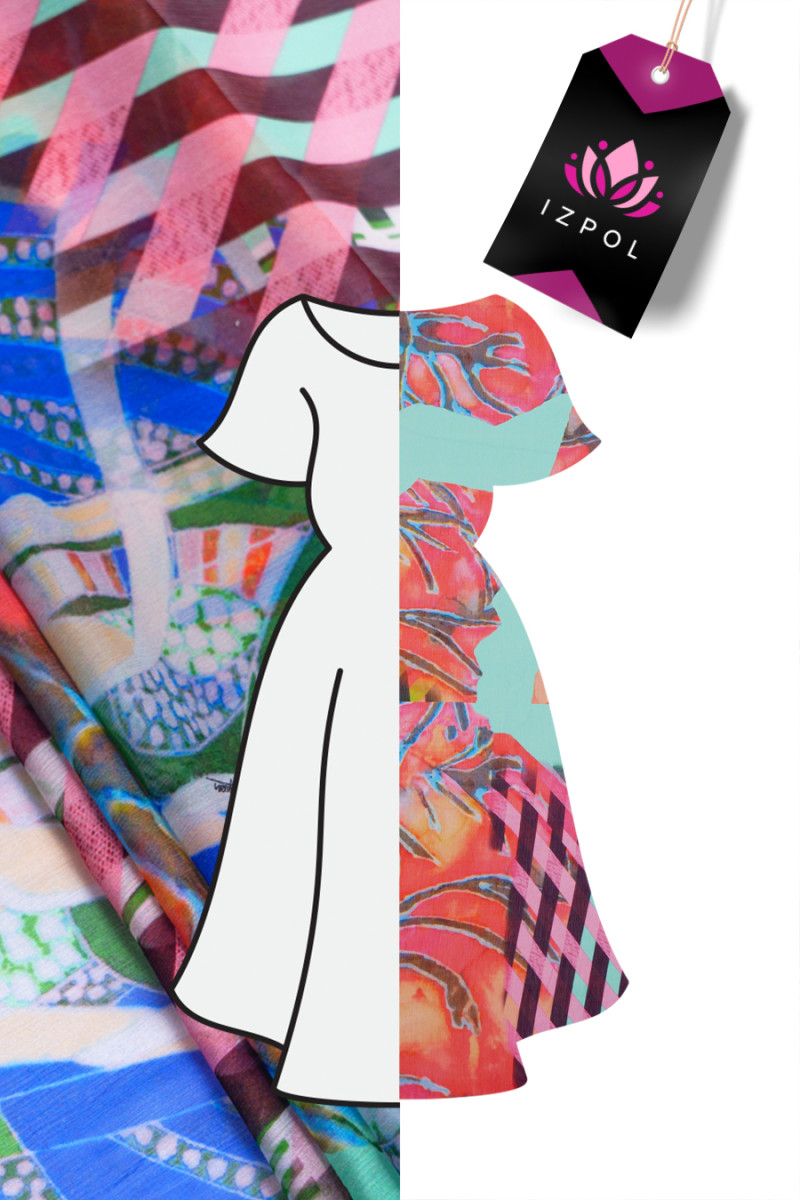 Taliansky hodvábny šifón pokrčený farebným, efektným kvetinovým a geometrickým motívom. Látka je dodávaná v kupóne s rozmermi 105 cm* 135 cm.