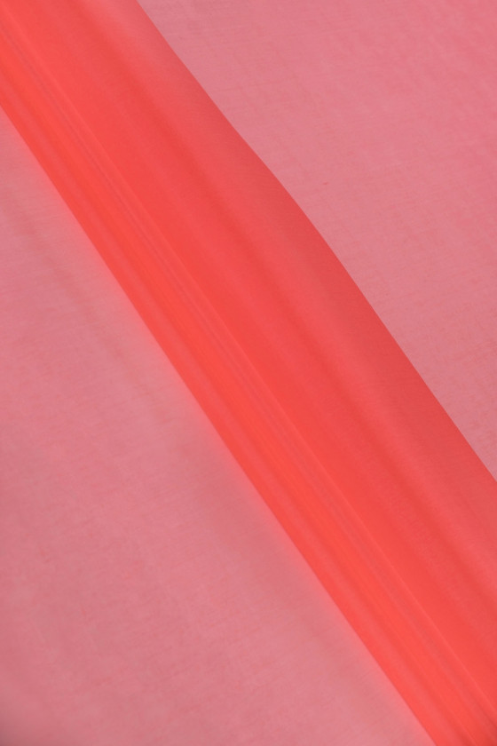 Talianska 100% organza hodvábna tkanina v koralovej farbe. Prírodná hodvábna organza je tenká, priehľadná, ale tuhá tkanina s jemným leskom charakteristickým pre hodvábne tkaniny.