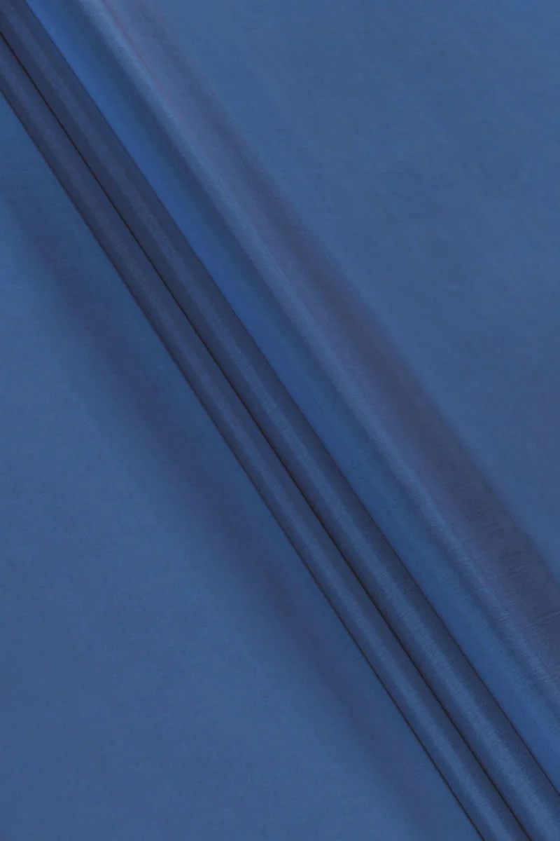 Talianska 100% hodvábna organza vo farbe nevädza modrá. Prírodná hodvábna organza je tenká, priehľadná, ale tuhá tkanina s jemným leskom charakteristickým pre hodvábne tkaniny. Ideálne na šitie šiat, blúzky, košele, sukne.
