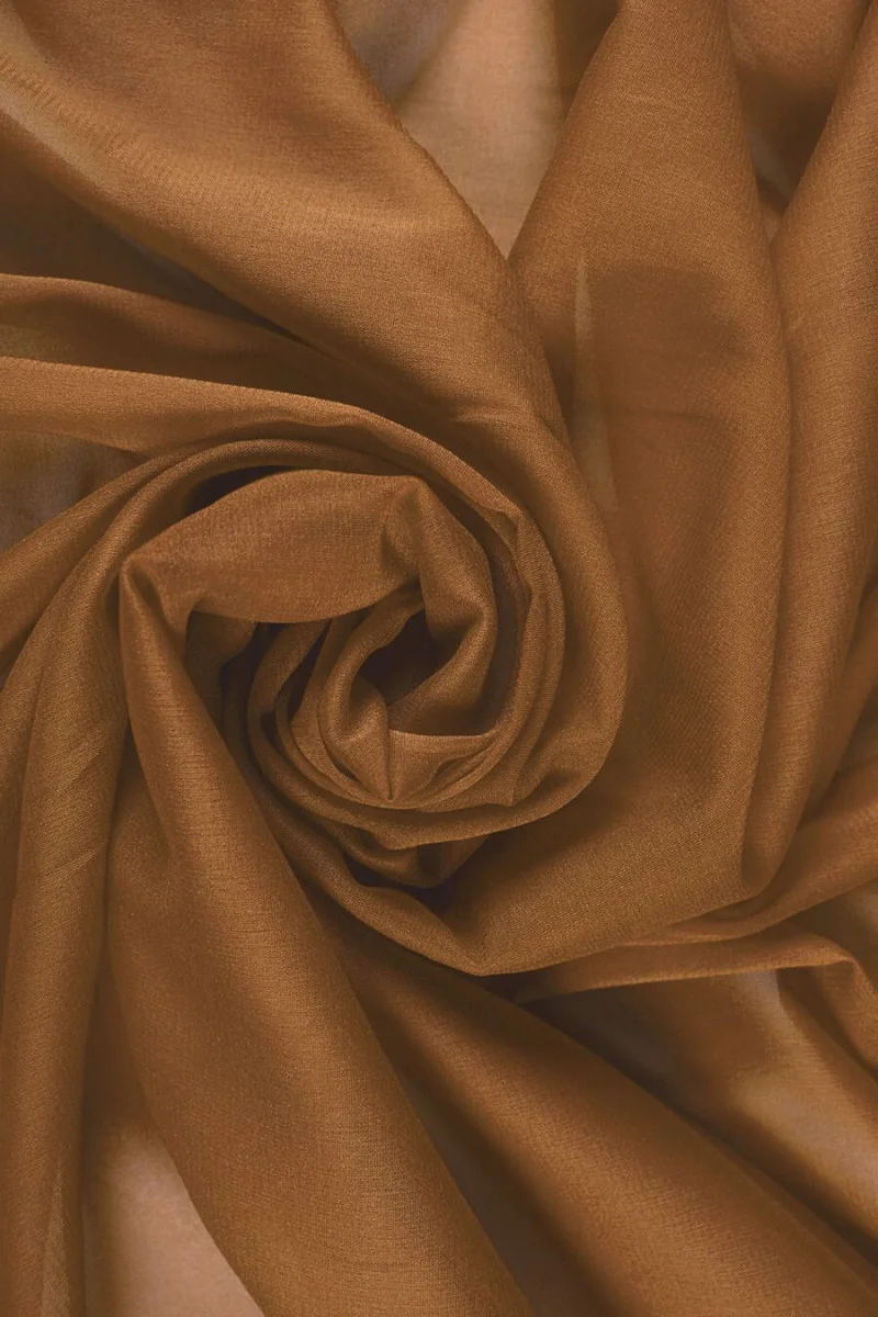 Taliansky žoržet 100% hodváb vo farbe starého zlata. Látka je tenká 90 cm široká, priehľadná, priedušná, priedušná, neelastická. Ideálne na blúzky, vzdušné šaty.