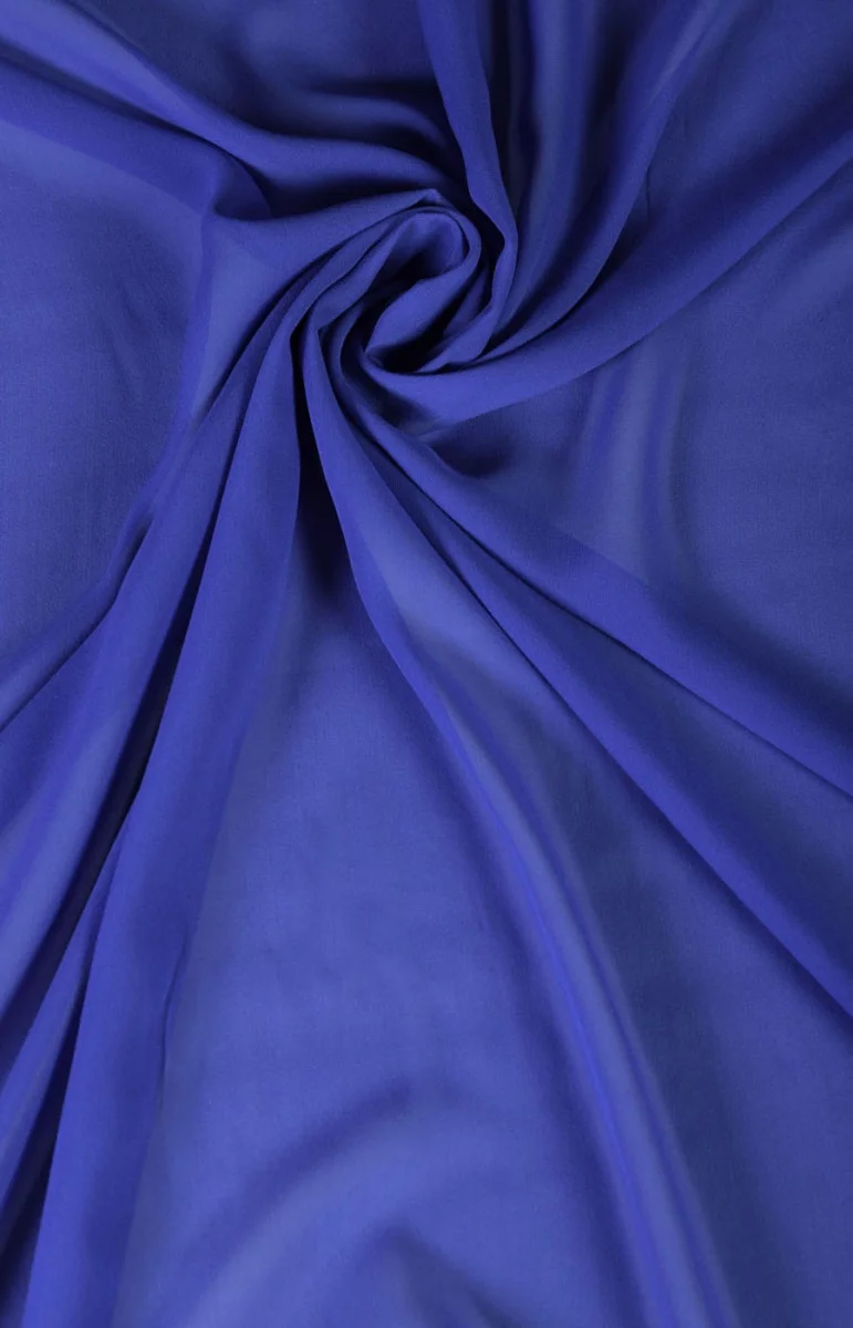 Tenká, priehľadná georgette vyrobená z prírodného hodvábu. Tkanina je priedušná, priedušná, neelastická. Ideálne pre blúzky, vzdušné šaty.
