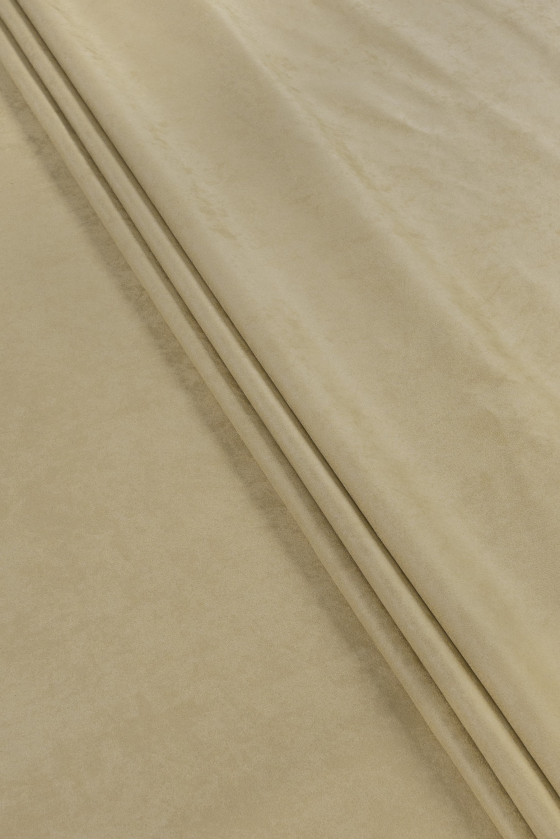 Talianska, elastická alcantarová tkanina vo svetlobéžovej farbe. Alcantara je syntetická tkanina vyrobená z mikrovlákna (mikrovlákna, až 20-krát jemnejšie ako ľudský vlas), vyzerá a pôsobí ako semiš. Mäkká, tenká, elastická tkanina - ideálna na šitie šiat, sukne alebo úzkych nohavíc.