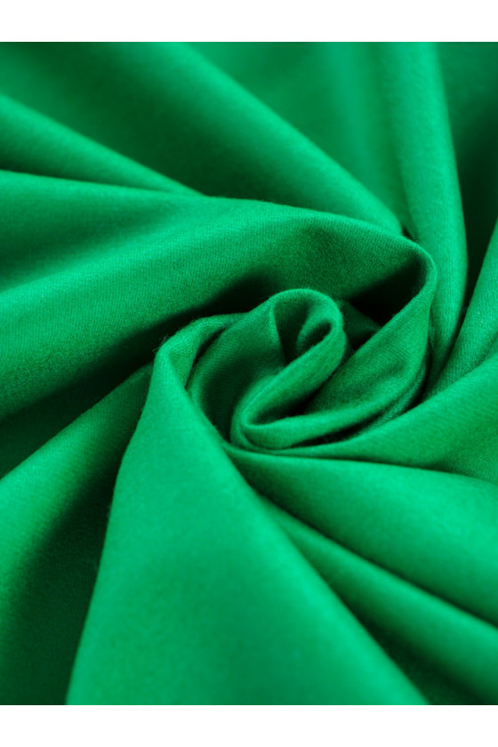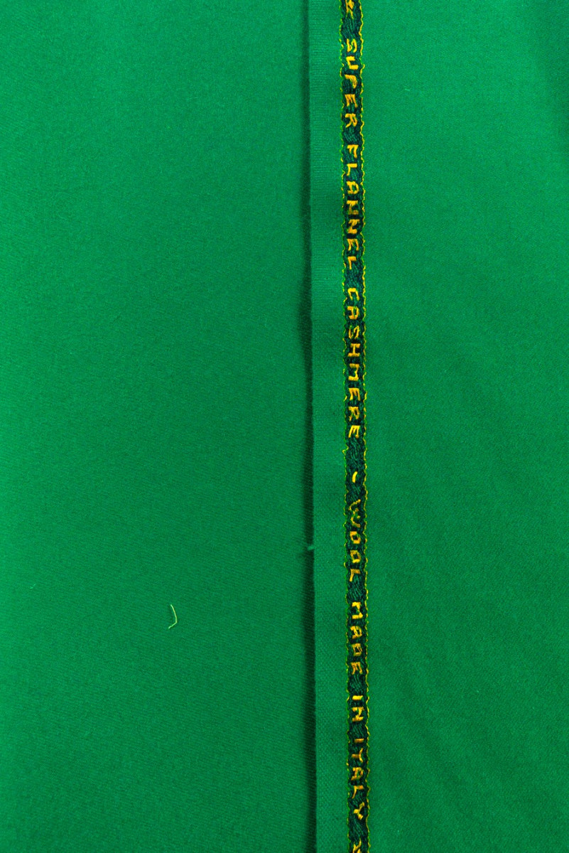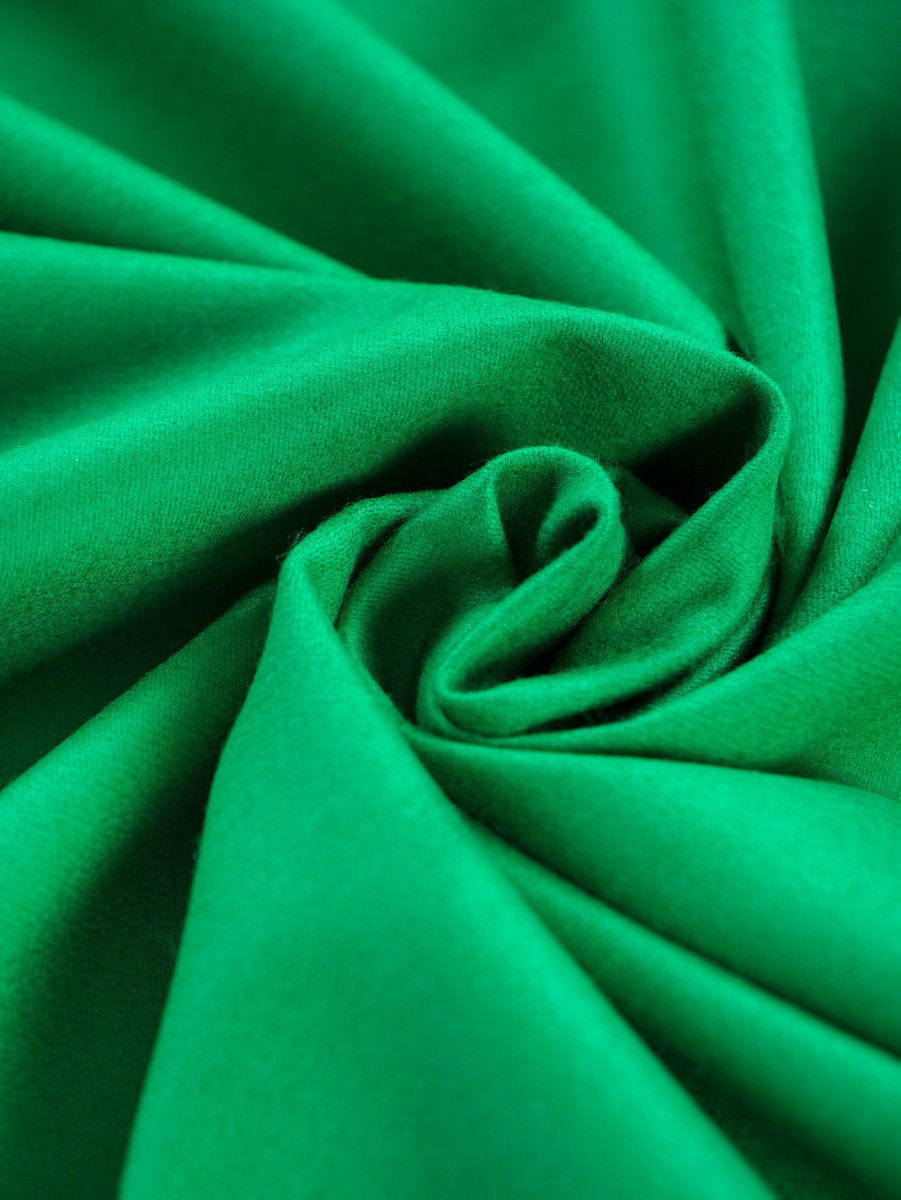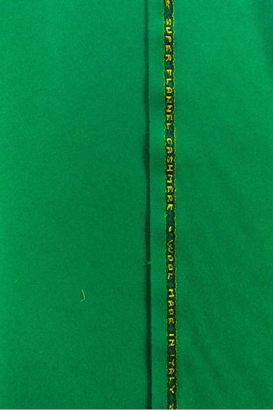Talianska, hrubšia vlna s kašmírom (vlna 80%, kašmír 20%) veľmi dobrej kvality v krásnej, šťavnatej zelenej farbe. Väzba mierne keprová. Odporúčame na šitie jesenného a zimného oblečenia ako: šaty, sukne, kostýmy alebo tenké kabáty.