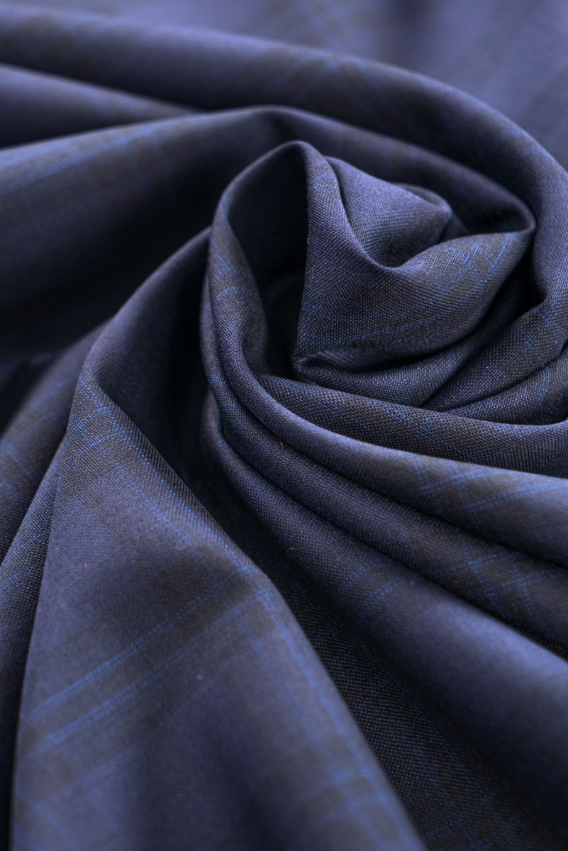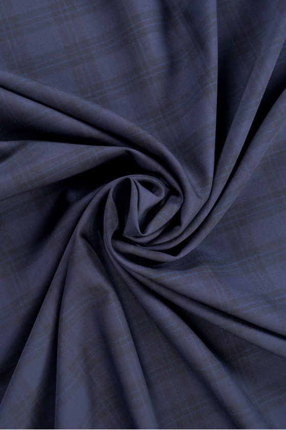 Tmavá námornícka modrá vlna s čiernym károvaním, twist 120. Veľmi kvalitná tkanina s gramážou ideálna pre obdobie jar-leto-jeseň.