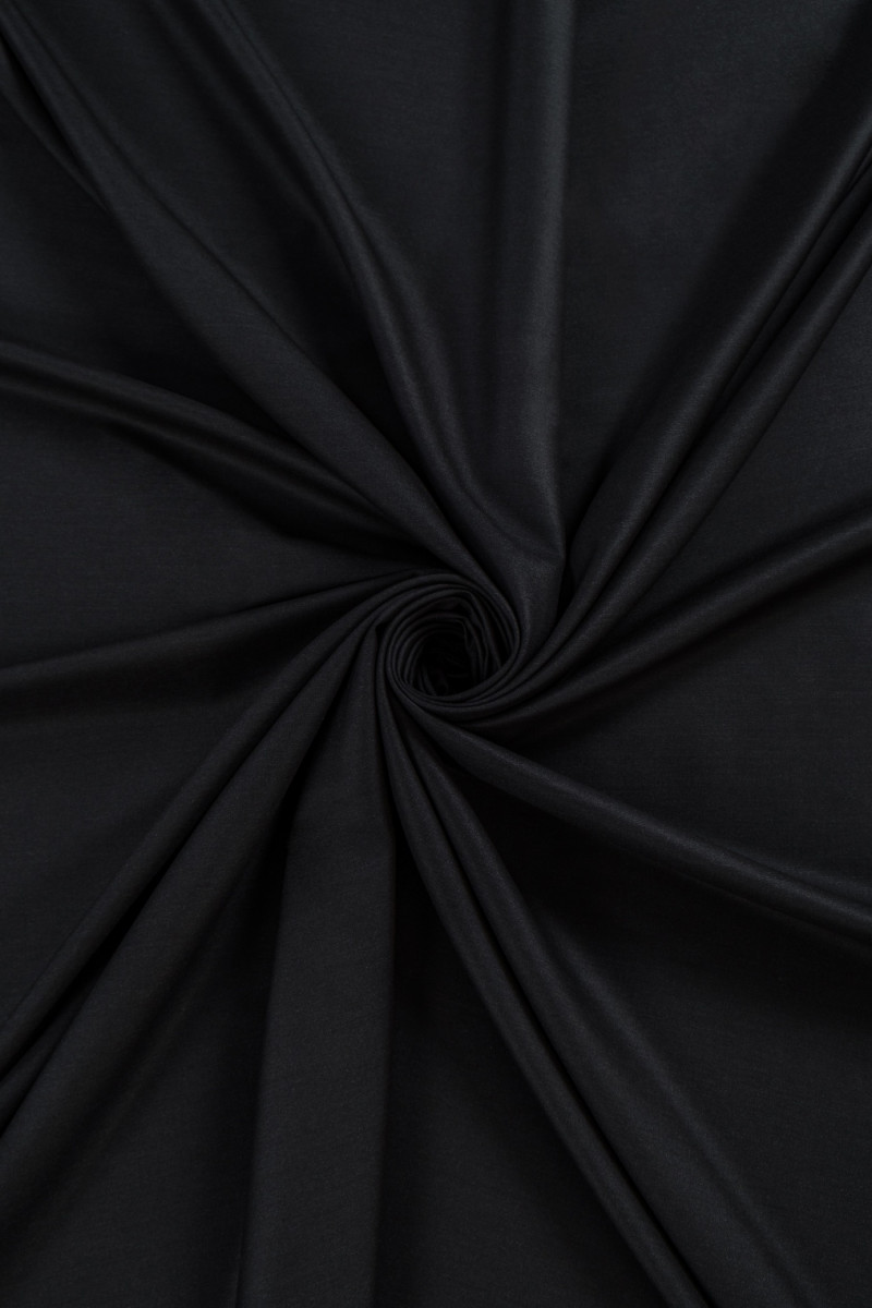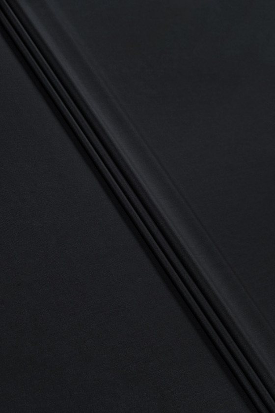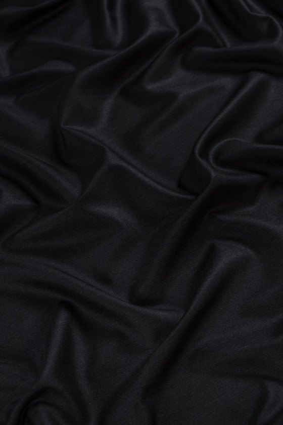 Talianska kostýmová vlna v grafitovej farbe so zaujímavým, diskrétnym leskom pripomínajúcim jemné trblietky. Mäkká, klasická tkanina, neelastická.