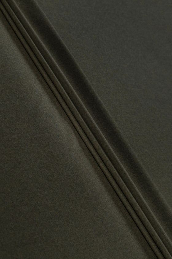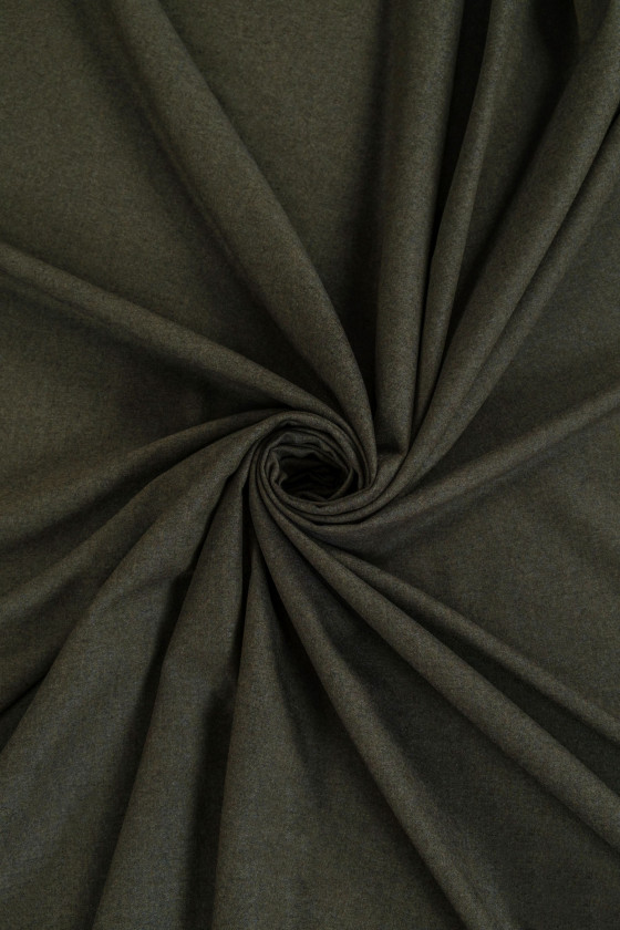 Talianska kostýmová vlna v olivovo zelenej - melanži. Mäkká, mäsitá, neelastická tkanina jesenného a zimného druhu. Ideálne na šitie kostýmu, obleku, nohavíc, sukne, šiat.