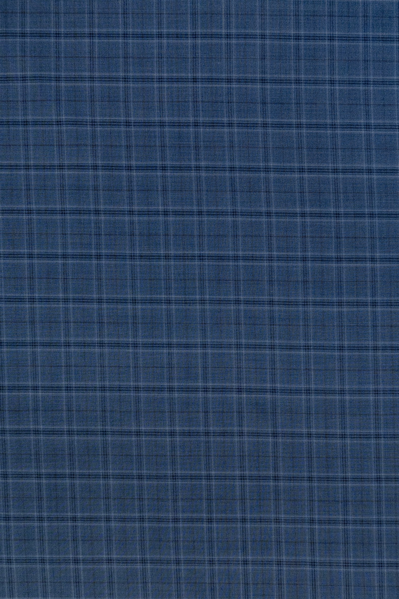 Talianska kostýmová vlna vo svetlej námorníckej modrej farbe s 5 cm širokým károvaným motívom. Mäkká, neelastická tkanina s klasickou väzbou.