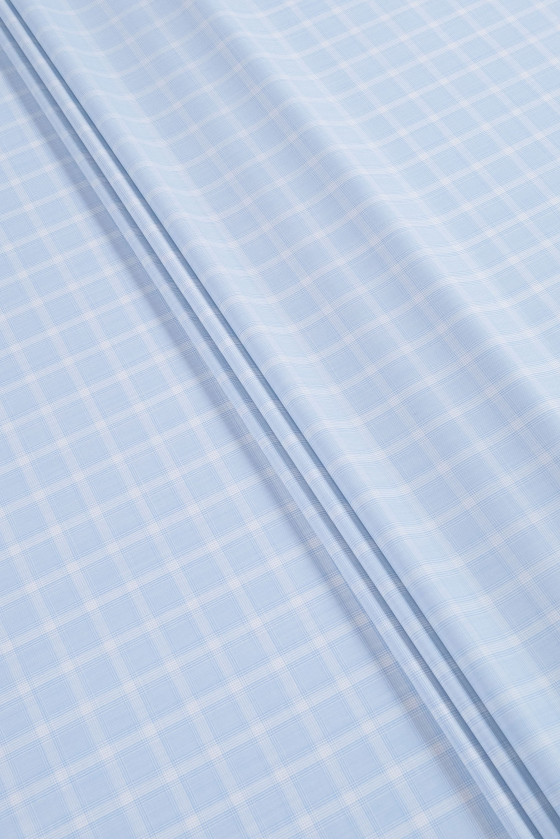 Talianska kostýmová vlna v modrej farbe s 5 cm širokým károvaným motívom. Tenká, neelastická tkanina s klasickou väzbou.