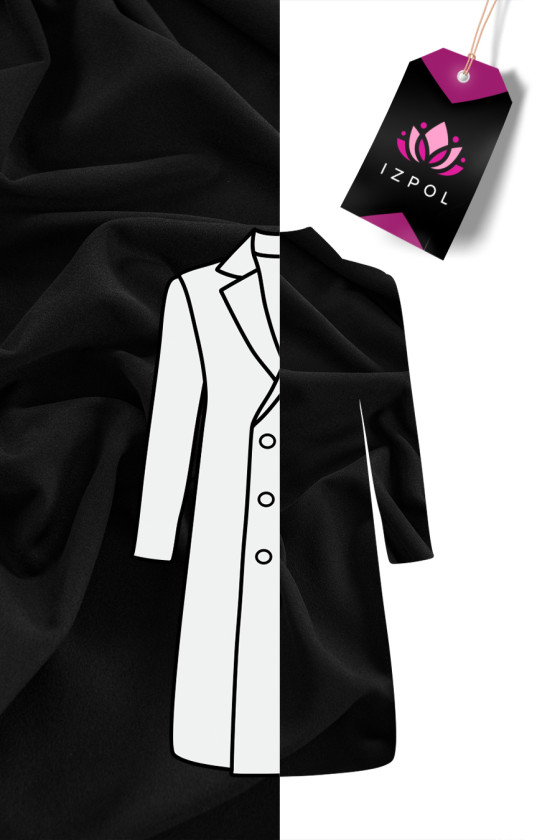 Talianska kabátová tkanina tkaná z prírodnej vlny s prídavkom polyamidu v čiernej farbe. Vlnené tkaniny sú ideálne na vrchné oblečenie (kabát, bunda, vesta), pretože zahrievajú a zároveň umožňujú pokožke dýchať. Pridaním kašmíru je kašmír ešte lepšie izolačný, pretože kašmír je teplejší ako ovčia vlna.