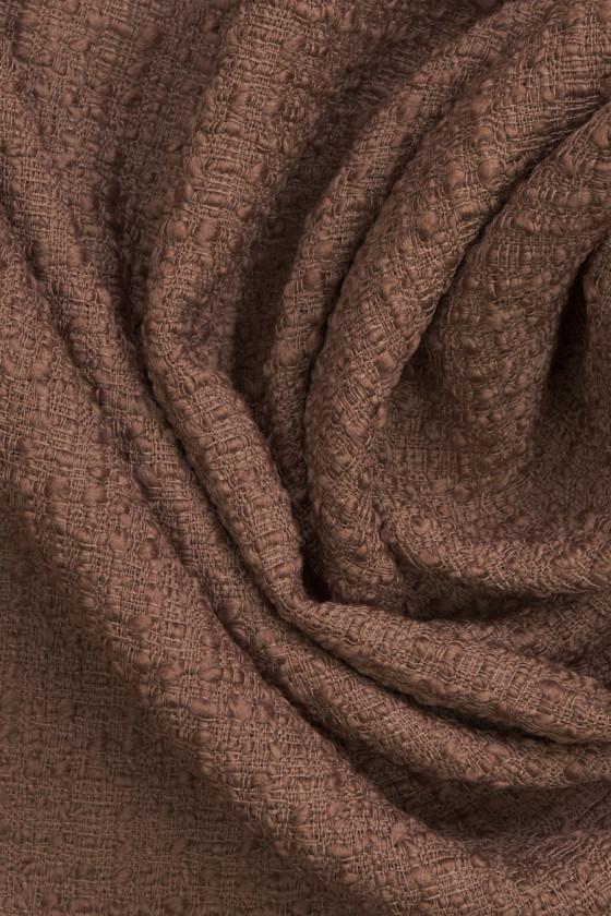 Talianska chanelová vlna s jemnou boucle väzbou v ťavej hnedej farbe. Tkanina najvyššej kvality, pochádzajúca z jednej z najznámejších tovární v Taliansku. K dispozícii sú aj iné farby!