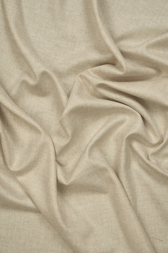 Talianska kostýmová látka vo svetlobéžovej farbe. Látka je strednej hrúbky, veľmi príjemná na úchop, mäkká a nepružná, pridanie vlny materiál zahrieva. Klasický návrh v krásnom odtieni béžovej, ktorý sa bude hodiť pri šití jesenných šiat, sukní, búnd a hrubších šatiek či šálov.