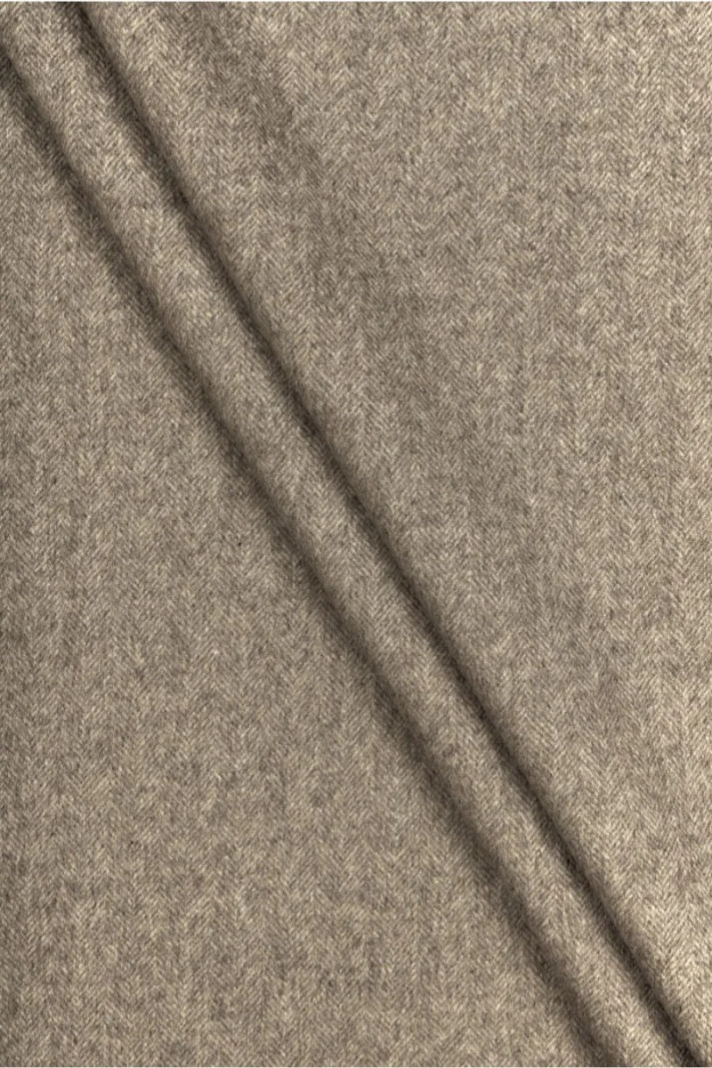 Talianska hrubšia látka, zmes vlny a polyamidu s jemným motívom rybej kosti v béžovej farbe. Tkanina je mäsitá, mäkká, neelastická. Skvele sa hodí k jesennému a zimnému oblečeniu. Dá sa použiť na šitie teplých šiat, sukne, bundy, ale aj tenšieho kabáta.