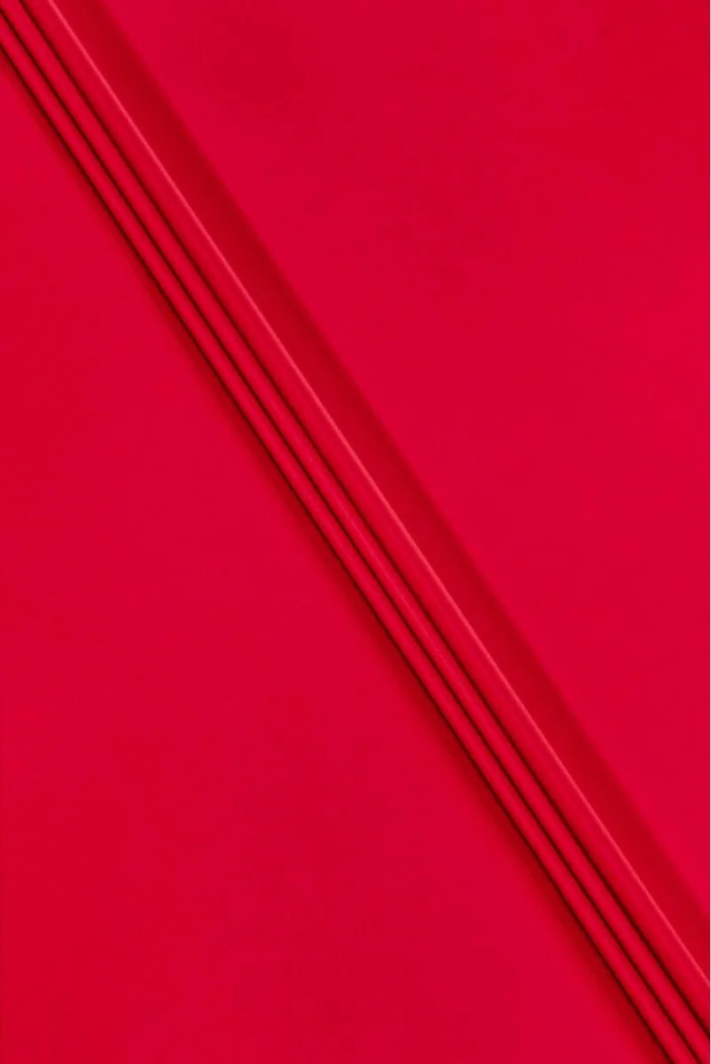 Talianska super kostýmová vlna v červenej farbe. Mäsitá, elastická látka s jemnou saténovou väzbou (mierne lesklá) vyrobená z vergin vlny (vergin vlna pochádza z prvého strihania oviec, takže je veľmi jemná a mäkká).