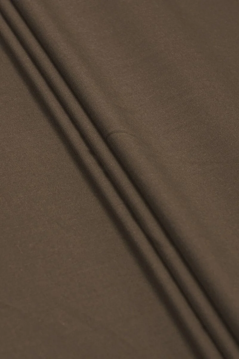 Talianska kostýmová látka z prírodnej vlny s prísadou elastánu v hnedej farbe a kvapkou zelenej. Materiál má hladkú, matnú tkaninu, je elastický so strednou hrúbkou. Je ideálny na šitie oblečenia ako: oblek, kostým, šaty, sukňa alebo nohavice.
