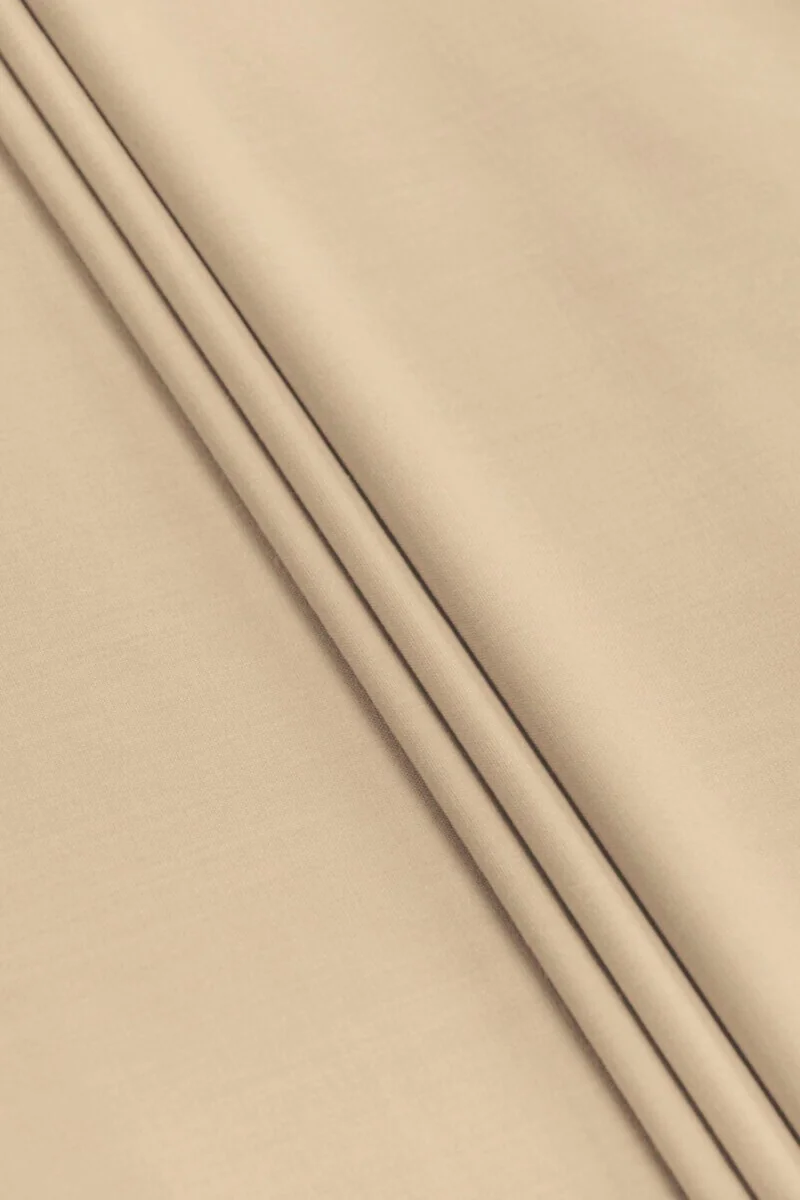 Talianska látka na kostýmy tkaná zo 100% prírodnej vlny v svetlobéžovej farbe. Látka s matnou väzbou je tenká, ale dobre zakrýva, mierne tuhá a mierne funguje na nite. Ideálne na klasické oblečenie ako šaty, sukne, nohavice, sako a bundy.