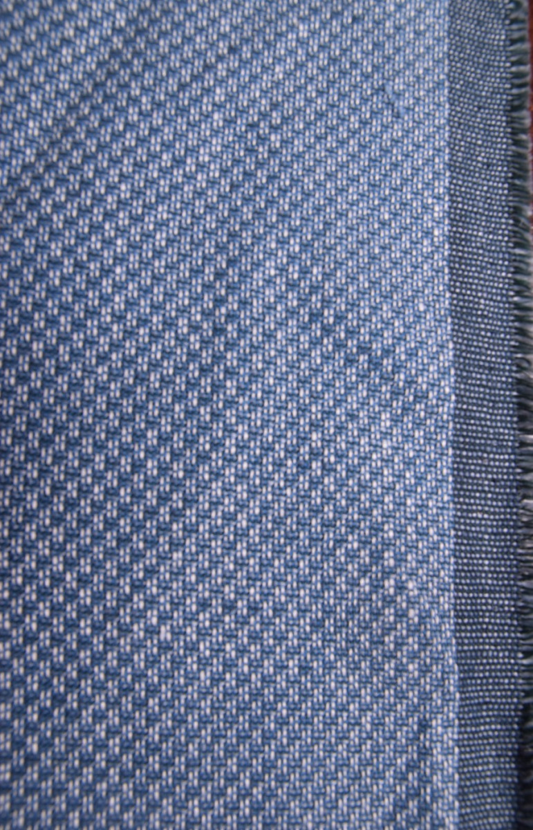 Ľan je ekologická tkanina, je vyrobená z rastlinných vlákien. Vďaka tomu sa úplne rozkladá, a preto sú ľanové tkaniny bezpečné pre životné prostredie. Fotografia ukazuje ľan tkaný striedavo bielou a modrou niťou, čo dáva efekt malej mriežky.