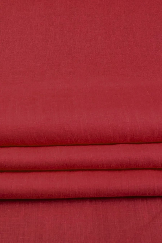 Talianska 100% ľanová tkanina v jahodovo červenej farbe.