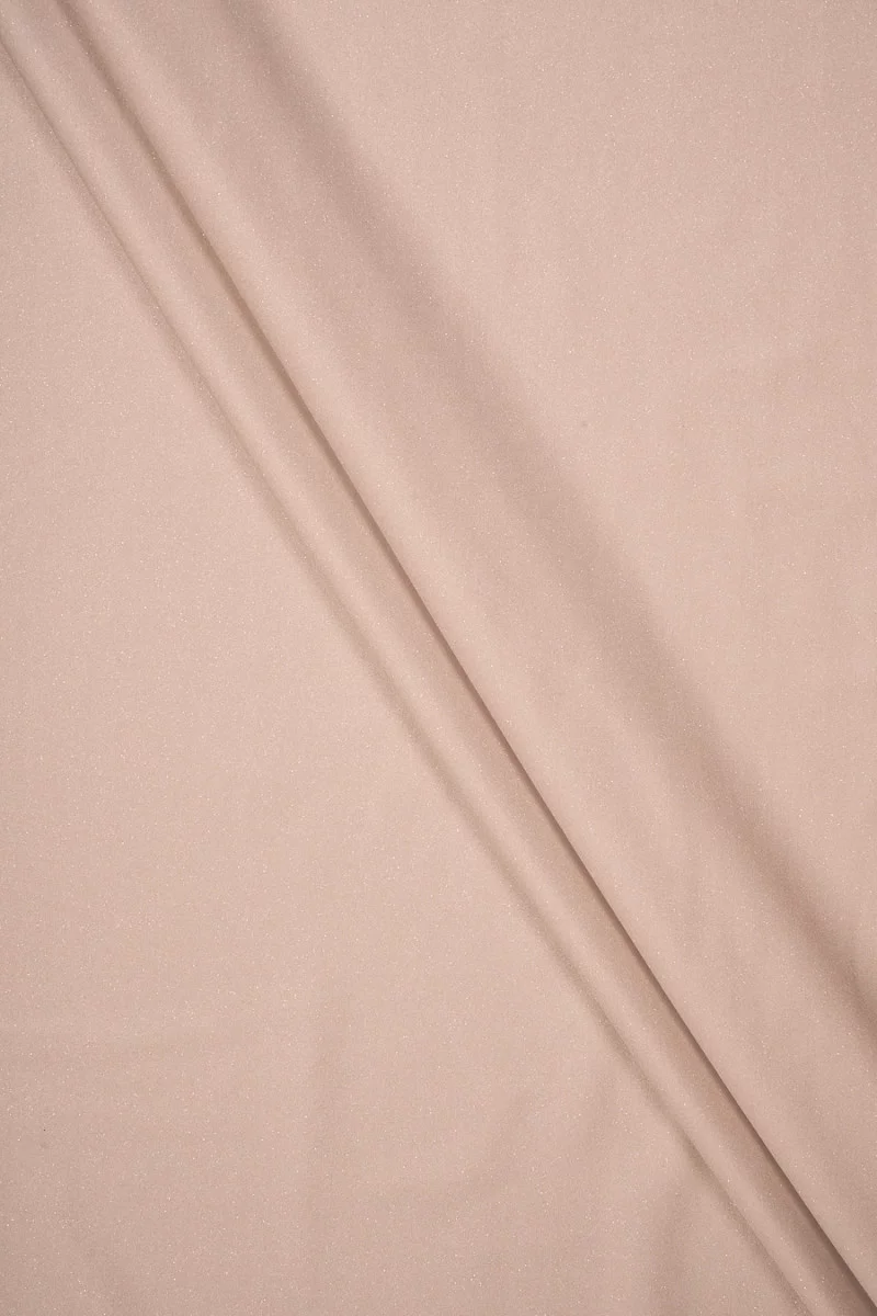 Talianska elastická lycra pletenina v nahej béžovej farbe so striebornými trblietkami (nespadne). Tkanina s hustou, pevnou väzbou, veľmi elastická - ideálna pre ľudí, ktorí majú radi oblečenie priliehavé na telo. Je ideálny na šitie tanečného alebo večerného oblečenia, ako aj plaviek, pretože je pohodlný a krásne lesklý.