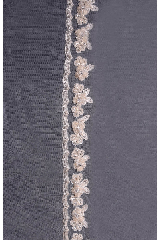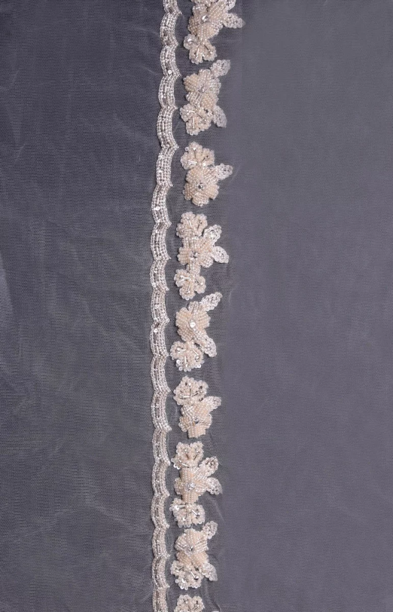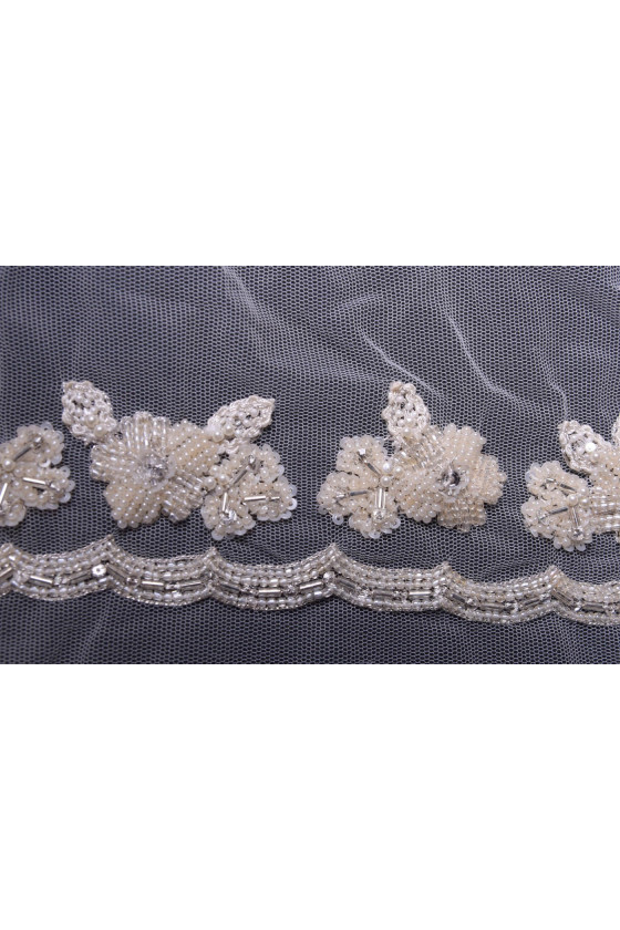 Krásne korálková páska. Perfektne sa hodí k povrchovej úprave svadobných a spoločenských šiat. Šírka tylu je asi 30 cm, šírka korálkov je asi 5 cm