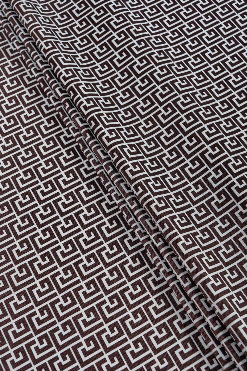 Taliansky viskózový džersejový úplet v bielej a hnedej farbe - podpísaný logom známeho francúzskeho módneho domu. Jersey je mäsitá, nepriehľadná, jemne riasnutá pletenina, ktorú je možné šiť bez podšívky.