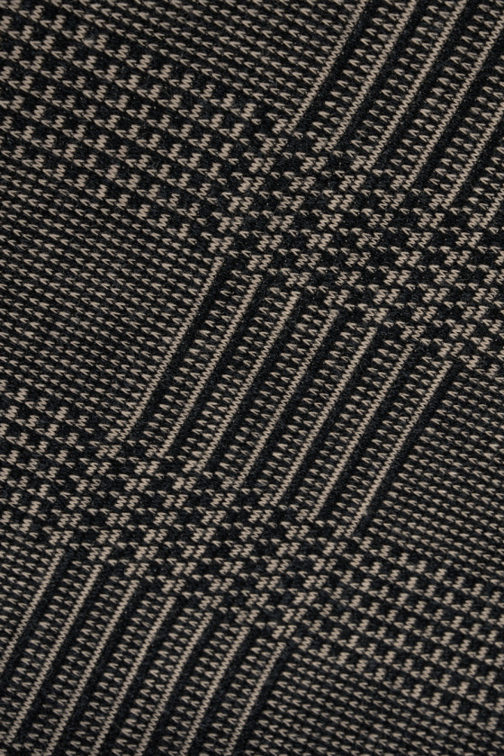 Talianska džersejová látka s čierno-hnedým károvaným motívom s rozmermi 4 cm * 9 cm. Jersejová tkanina je poťahová, mäkko skladacia, elastická pletenina, ktorú je možné šiť bez podšívky. Ideálny návrh v klasickom dizajne na vytvorenie šiat, sukne, nohavíc a saka.