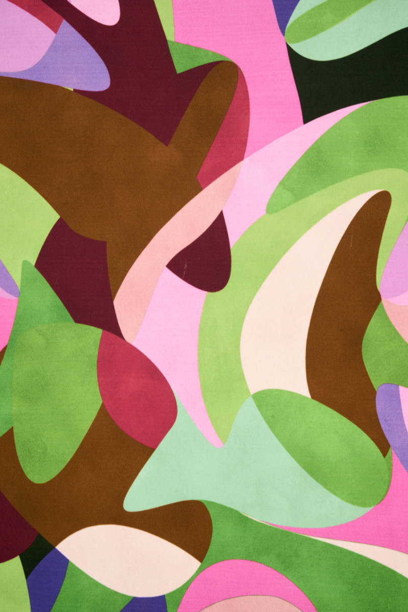 Talianska viskózová pletenina s farebným geometrickým vzorom. Tkanina je mäsitá, elastická, na dotyk chladná, úplne nepriehľadná, matná a hladká. Fantastický návrh na letné oblečenie, ako sú šaty, blúzky, sukne, šortky alebo nohavice.