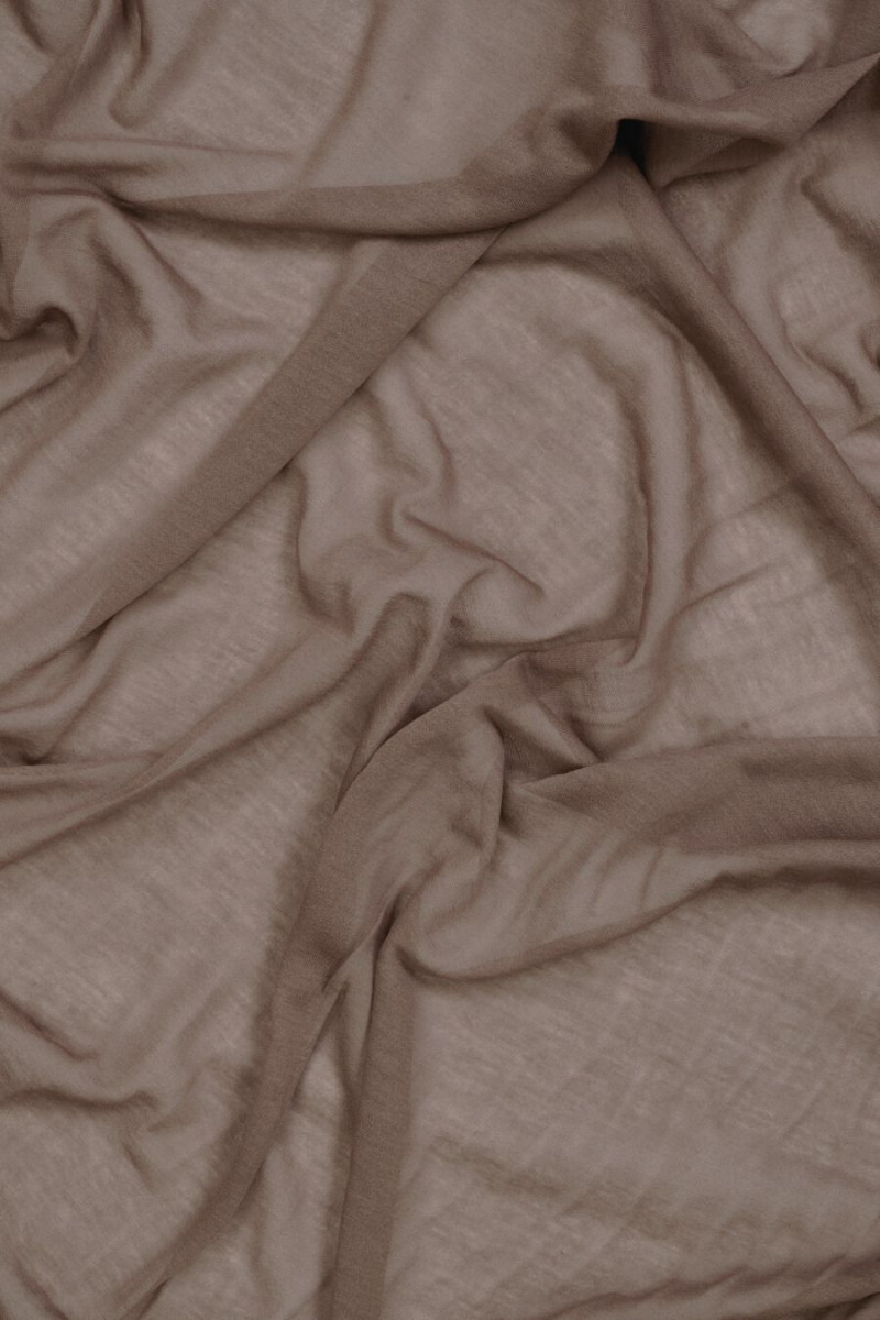 Taliansky úplet tkaný zo 100% moka micromodal. Úplet je tenký, priehľadný, mäkký, matný a elastický a na dotyk mierne drsný. Odporúčame na blúzky, topy, tričká.