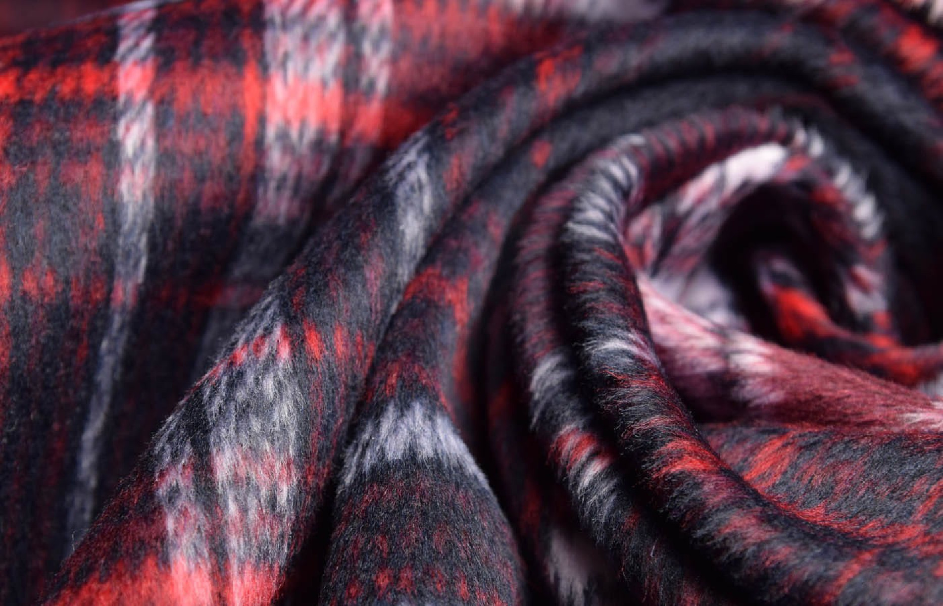 Krásna klasická kontrola. Hrubšia tkanina určená na kabáty a bundy. Má krátke vlasy. Odporúča sa chemické čistenie.