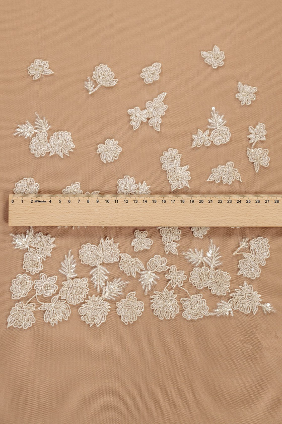 Čipkovaná páska s ecru korálkami KUPÓN 170 cm
