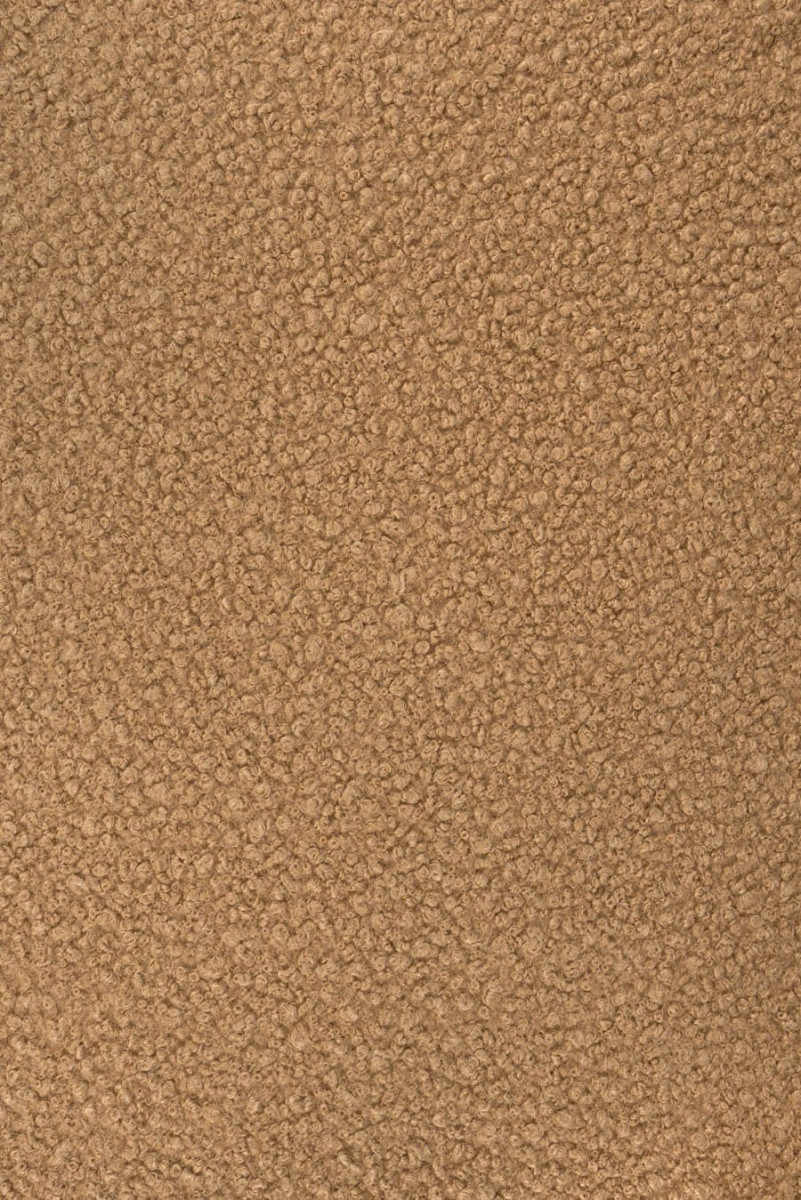 Talianska boucle kabátová tkanina v ťavej farbe. Tkanina je hrubšia, mäsitá s charakteristickou textúrou.