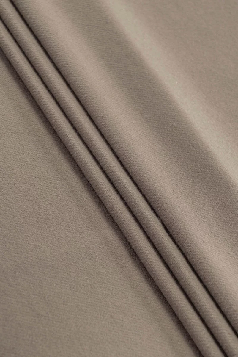 Talianska kabátová tkanina v tmavej, studenej béžovej farbe s keprovou väzbou. Tkané z prírodnej vlny a polyamidu.