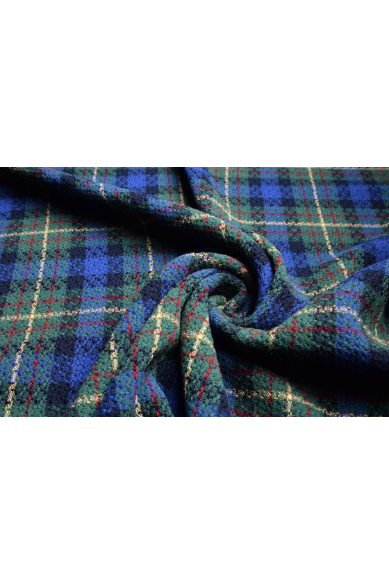 Krásna klasická kontrola. Hrubšia tkanina tkaná zo zmesi vlákien určená na kabáty a bundy. Tkajte hrubú hrubú väzbu. Odporúča sa chemické čistenie.