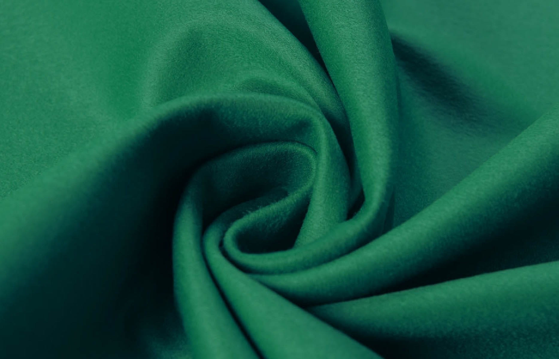 Talianska kabátová tkanina tkaná zo 70% panenskej vlny a 30% kašmíru, v smaragdovo zelenej farbe.