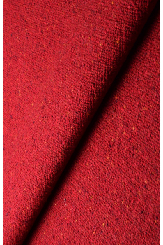 Talianska kabát tkaná zo 100% prírodnej vlny v červenej farbe - látka je lepená vetruodolnou membránou. Vlnené tkaniny sú ideálne na vrchné oblečenie (kabát, bunda, vesta), pretože hrejú a zároveň umožňujú pokožke dýchať.