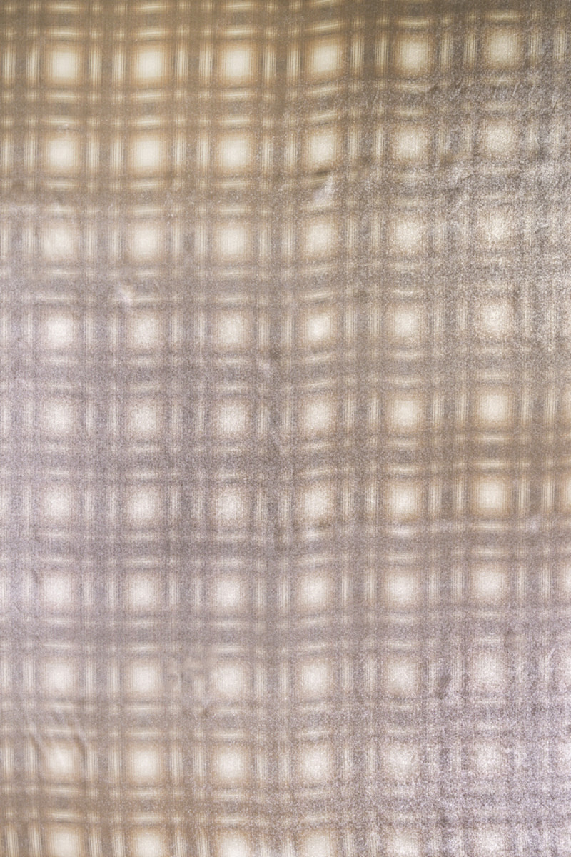 Talianska viskózová tkanina s fuzzy károvaným motívom v béžovej a hnedej farbe, zdobená zlatou lurexovou niťou, ktorá vytvára efekt žiary. Viskóza je tkanina získaná z celulózy, veľmi priedušná a mäkká, je šetrná k pokožke (nealergénna) a dokonale absorbuje vlhkosť. Neelastická, mierne priehľadná tkanina - ideálna na šitie letných šiat, blúzky alebo sukne.