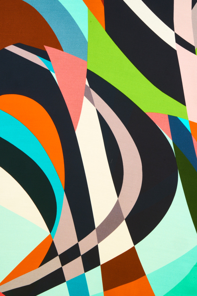 Talianska látka 100% viskóza s farebnými geometrickými motívmi. Originálny vzor v energetických farbách, pozostávajúci z prvkov rôznych veľkostí a tvarov. Látka je saténová, mäkká, splývavá, ľahká a veľmi príjemná na dotyk. Zaujímavý návrh pre jedinečné oblečenie, ako sú šaty, sukne, blúzky a košele.