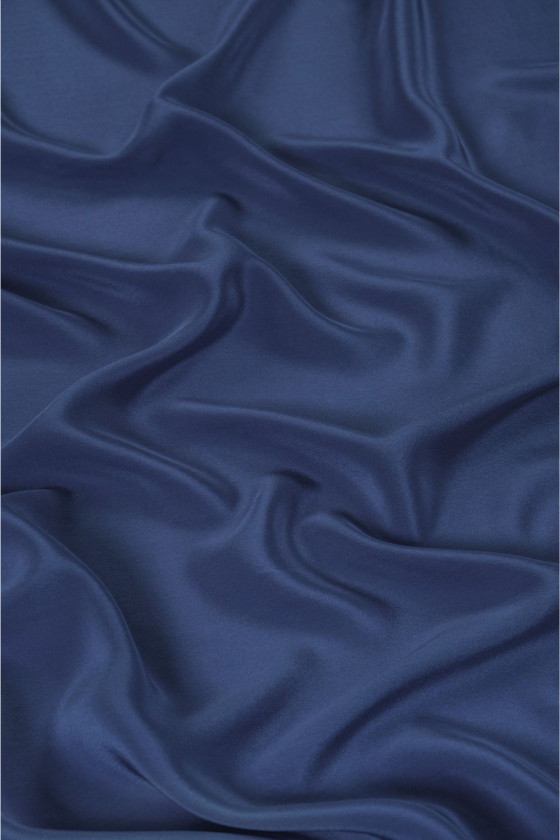 Talianska krepová tkanina tkaná z acetátu s prímesou prírodného hodvábu vo svetlej námorníckej modrej. Krep je látka s charakteristickým polomatným povrchom. Má jemne skrútenú väzbu, ktorá dodáva látke jemnú štruktúru.