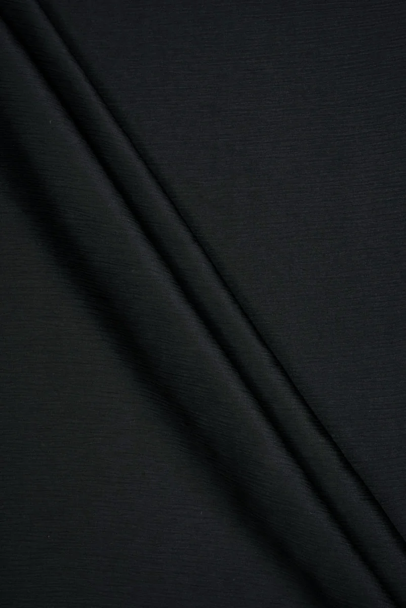 Krásna krížom prešívaná látka utkaná zo zmesi viskózy a umelého hodvábu v dvoch klasických farbách, teda bielej a čiernej. Látka je splývavá, neelastická, mäkká a zakončená elegantným saténovým leskom. Je skôr mäsitý a má peknú ťažkosť, vďaka ktorej látka splývavá. Vynikajúca ponuka pre tých, ktorí hľadajú kvalitné látky. Dá sa z neho vytvoriť blúzky, košele, šaty, sukne a splývavé nohavice.