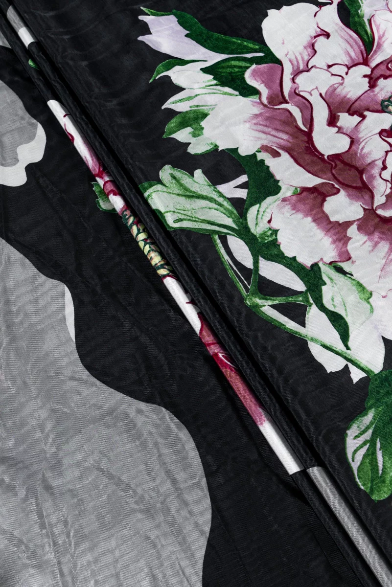 Viskózová tkanina s veľkým kvetom v kupóne 140 cm * 145 cm. Neelastická tkanina, s väzbou tenkého grosgrainu a s miernym leskom.