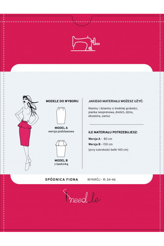 Použitie materiálu závisí od typu sukne, ktorú chceme ušiť. Pre klasickú verziu ceruzky potrebujete 80 cm látky a pre peplum sukňu potrebujete 150 cm látky (obe hodnoty predpokladajú šírku lúča 140 cm).