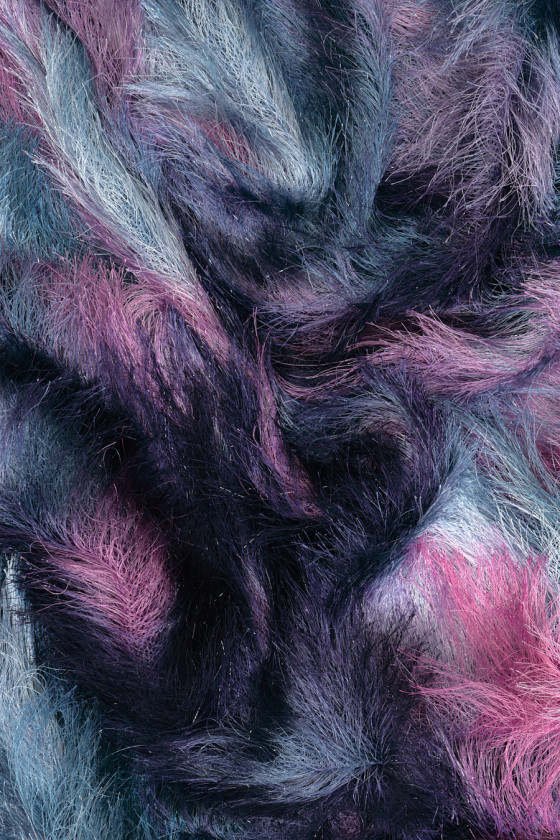 Talianska večerná tkanina vo forme siete s husto šitými strapcami v modrej, námorníckej modrej, fialovej a ružovej farbe a lesklé stuhy. Krásne farby strapcov vytvárajú tieniaci efekt, ktorý vám umožní vytvoriť jedinečné stvorenie. Tkanina je mierne priehľadná, elastická, mäkká a ľahká.