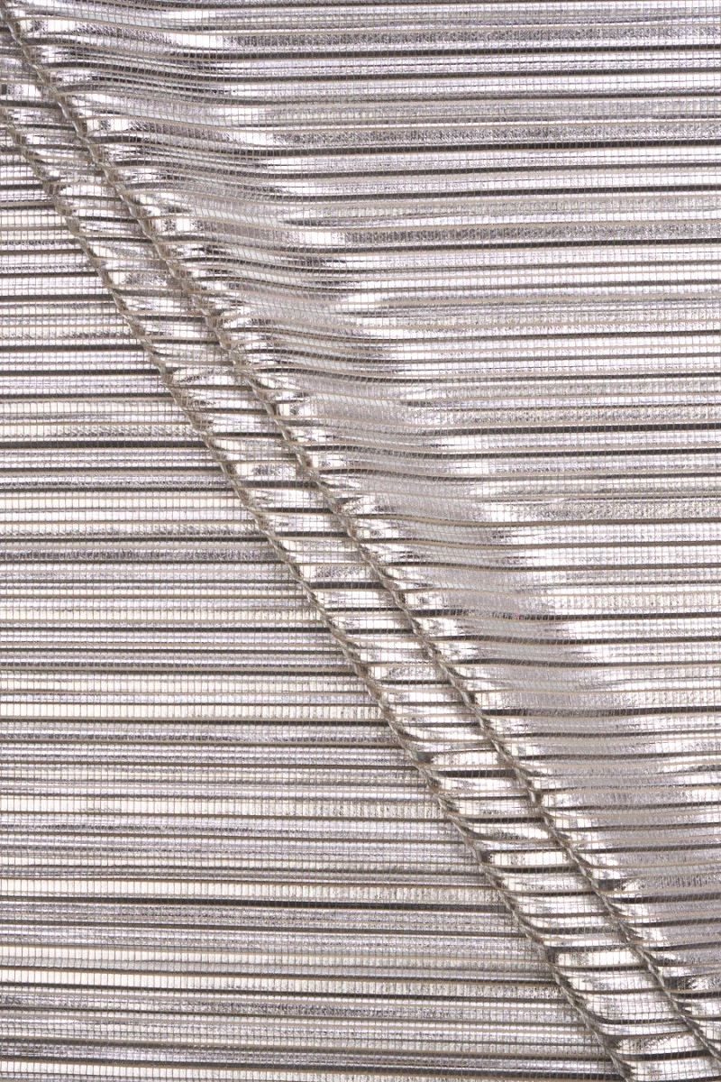 Pôsobivá plisovaná látka v béžovej farbe s husto umiestnenými, malými, lesklými štvorcami v striebre. Látka je ľahká, splývavá, intenzívne lesklá, čo jej dodáva jedinečný a exkluzívny vzhľad. Perfektne sa hodí k formálnym outfitom.