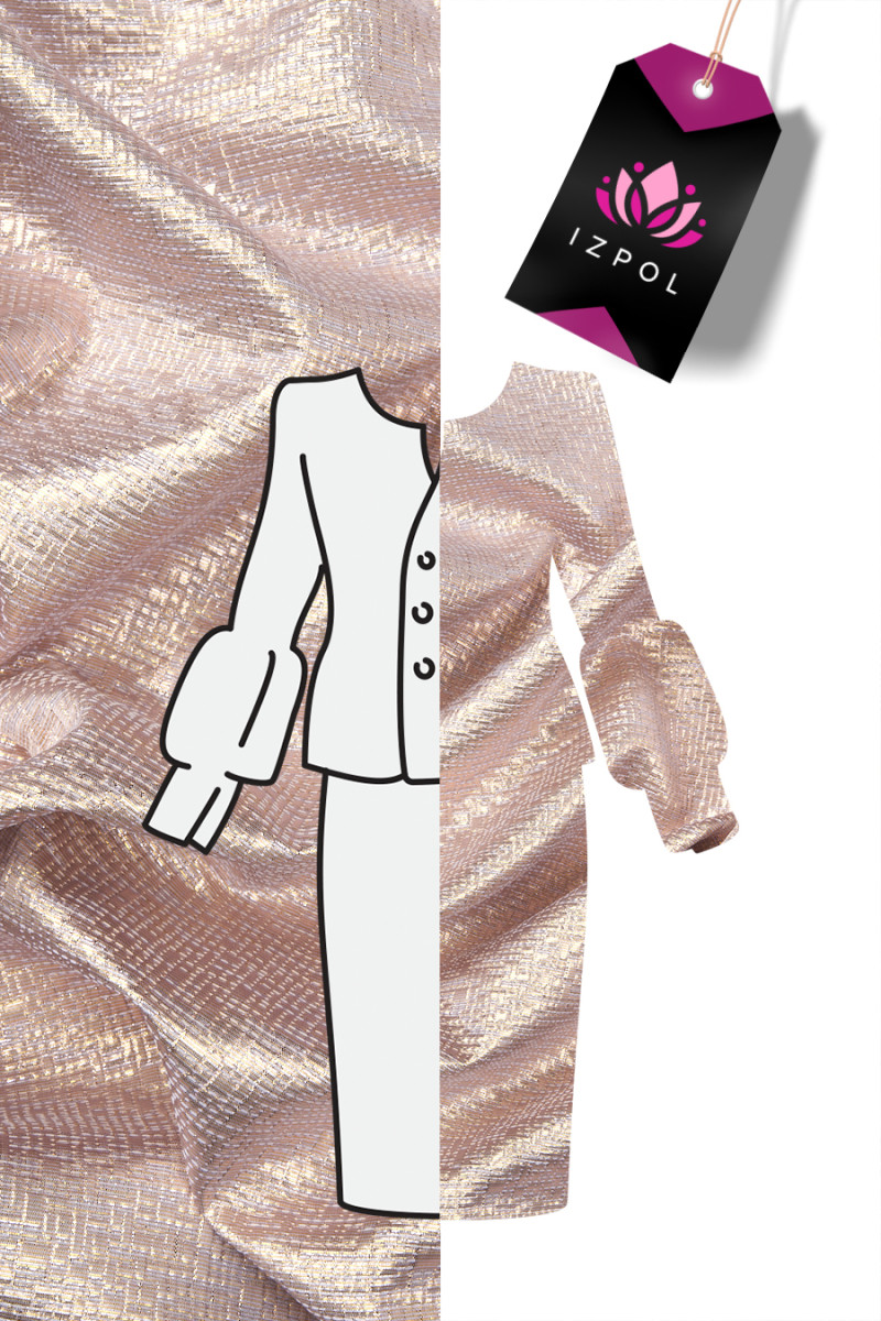 Talianska žakárová kostýmová látka v fialovej a zlatej farbe s motívom malej, nepravidelnej kocky. Stredne hrubá, neelastická tkanina s lurexovou niťou - ideálna na šitie kostýmu, šiat, sukne, saka alebo na dekoratívne účely.