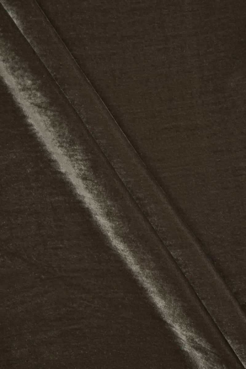 Taliansky, exkluzívny zamatový materiál v zaujímavej škále farieb tkaný s pridaným hodvábom. Látka je mäkká, splývavá, neelastická, tenká, ale nepriehľadná. Krásne leje a ušľachtilý lesk robí látku veľmi elegantnou. Skvelý nápad na vytvorenie formálnych šiat, sukne alebo blúzky.